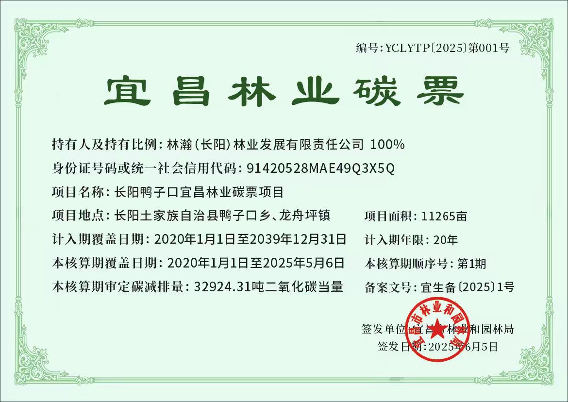 广西南宁市市辖区长阳鸭子口宜昌林业碳票碳减排量50吨转让项目